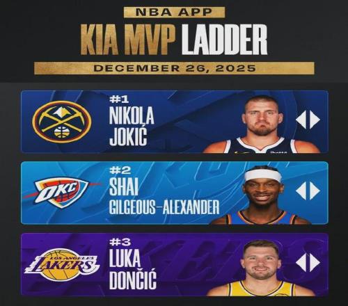 而在约基奇没有受伤之前,他在NBA官方最新评选的MVP榜单蝉联第一。