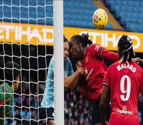 看着就疼,女足曼市德比两名球员头部相撞后均鼓起大包 -